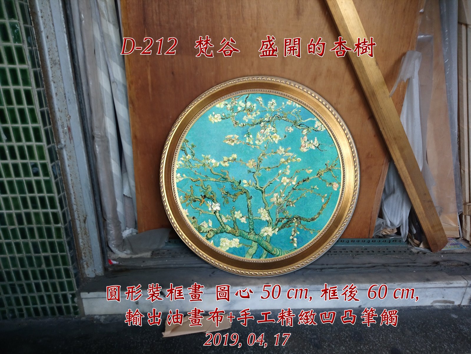梵谷 盛開的杏樹 圓形裝框畫 |
