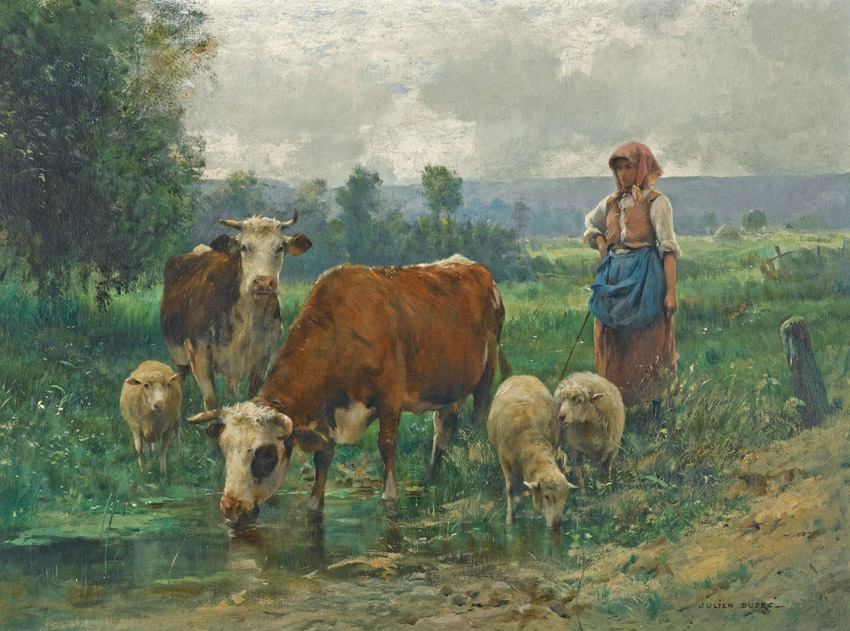 水邊的年輕婦女和乳牛 |